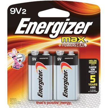 Energizer 2 Pack 9V Alkaline Batteries