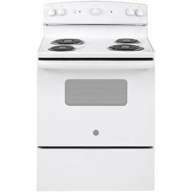 GE 30″ Electric Freestanding Range With 1.6 CuFt 1000 Watt Over-The-Range Microwave Oven In White
