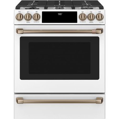 GE Cafe 5.7 CuFt Smart Slide-In 6 Burner Electric And Gas Range In Matte White