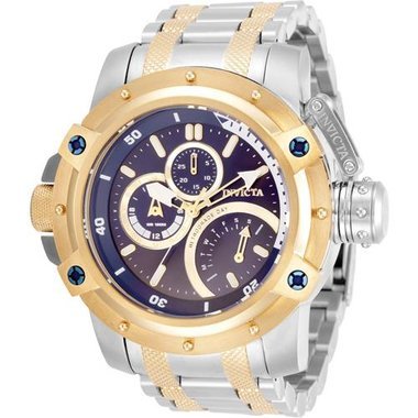 Invicta Men Coalition Forces Collection Steal And Gold Band Blue And Gold Dial 52.5 mm Stainless Steel Watch